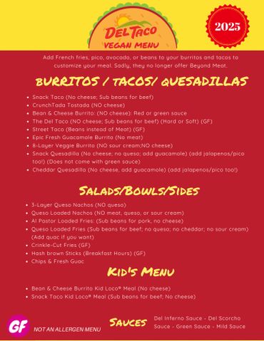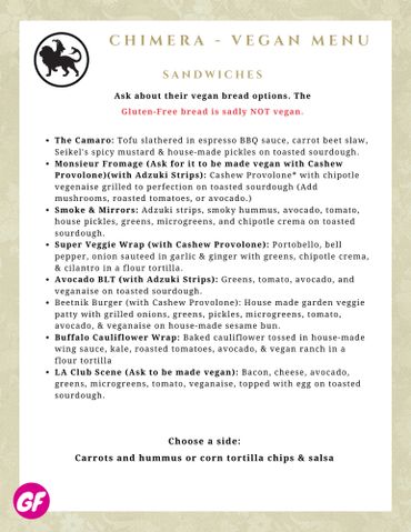 This guide is subject to menu items changing, misinformation being provided by restaurants, and may list vegan options that are cross-contaminated. We try to be as accurate as possible, but errors may occur. Please discuss your individual concerns with restaurant managers if you have an allergy. These are not allergen menus. If you notice any errors, please email sarahhydentvg@gmail.com
